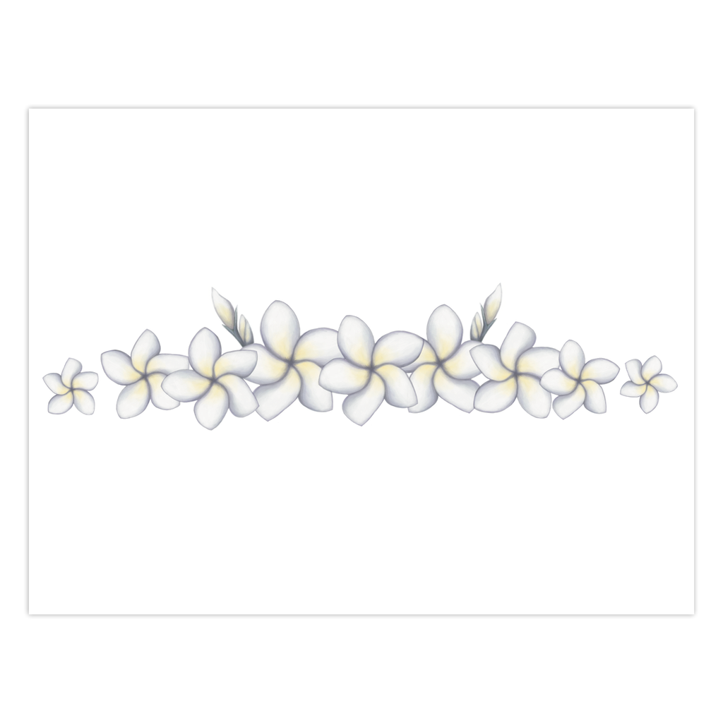 Original, digitally drawn design of the classic white and yellow plumeria flowers, sure to brighten your recepient’s day. Blank inside for you to customize your message. Cards are printed on high quality matte paper and come pre-folded.