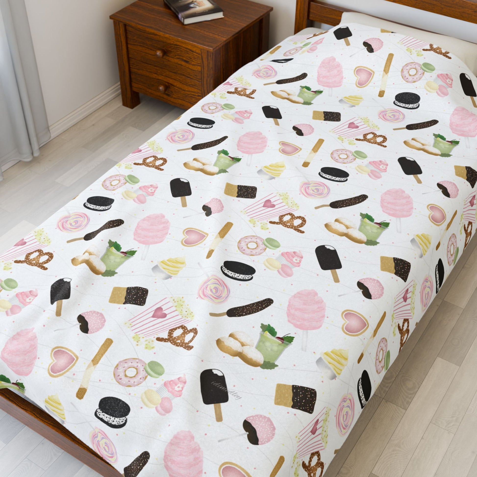 Velveteen Blanket- Happiest Park Snacks (White)