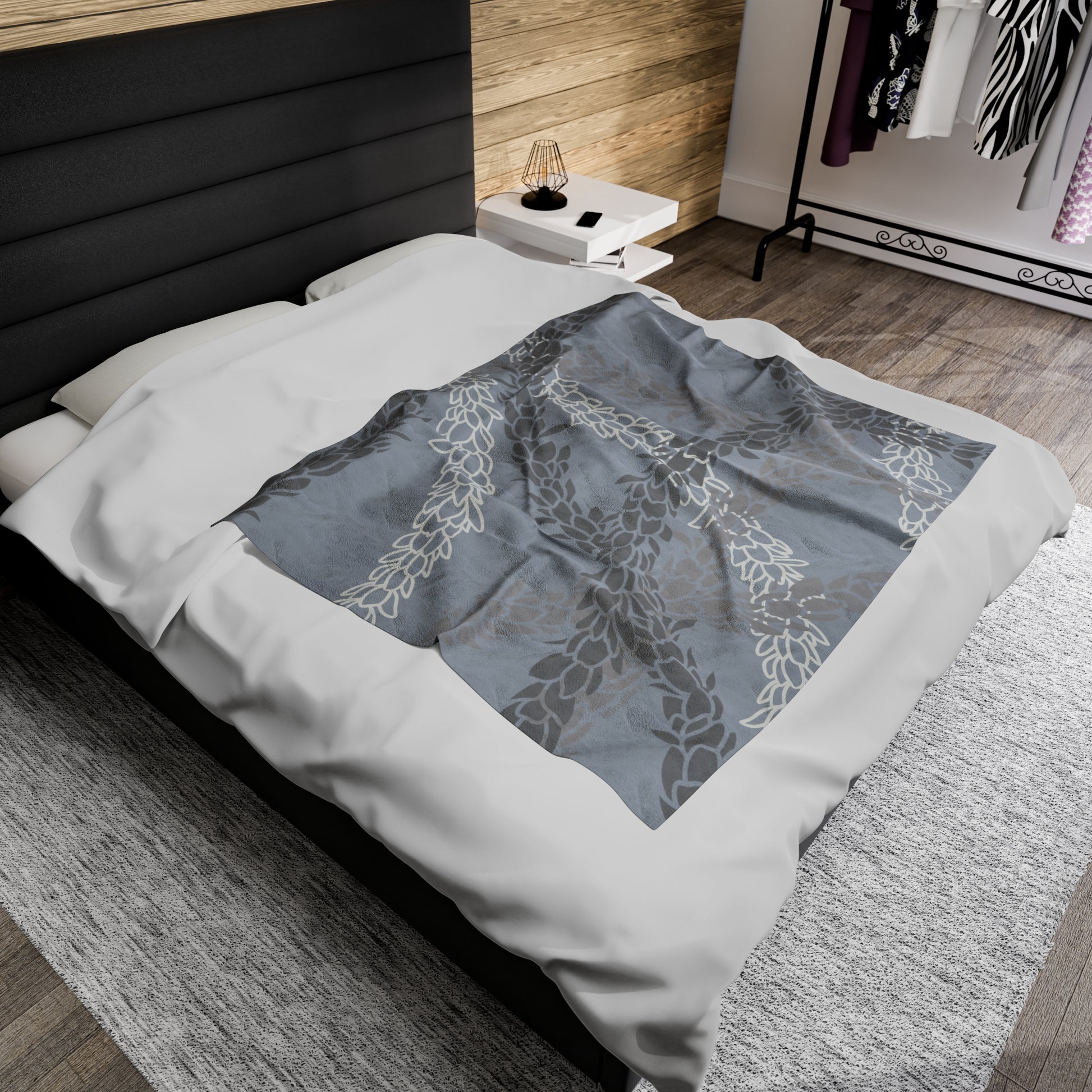 Velveteen Blanket- Pikake Wishes (Gray)