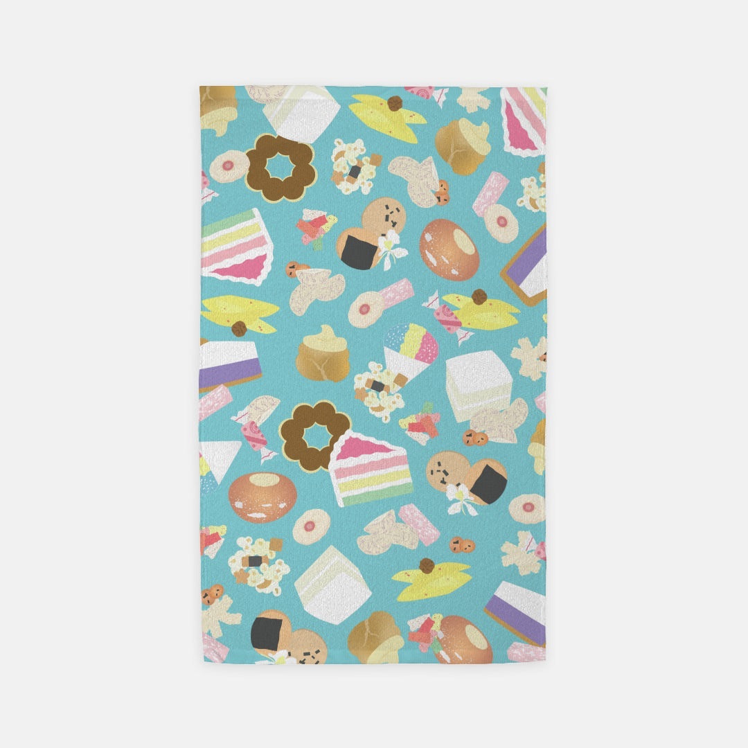 Microfiber Terry Dish or Hand Towel- Hawaii’s Favorite Sweet and Savory Snacks (Green Blue)