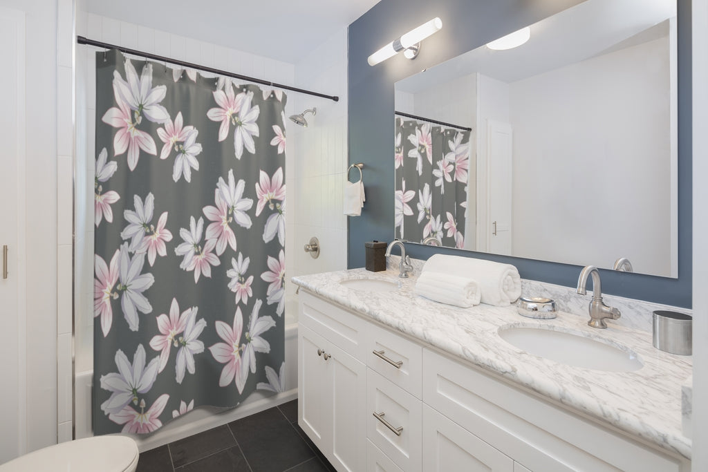 Shower Curtain- Naupaka Love Story (Dark Gray)