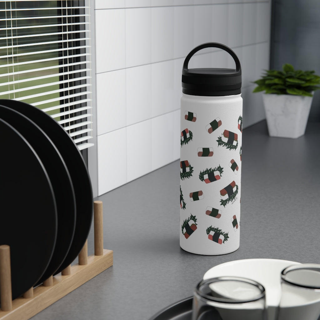 Water Bottle, 3 sizes, Stainless Steel with Handle Lid- Hawaii Musubi